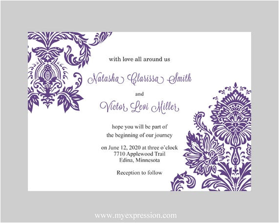wedding invitation template purple damask instant download from Wedding Invitation Template Download