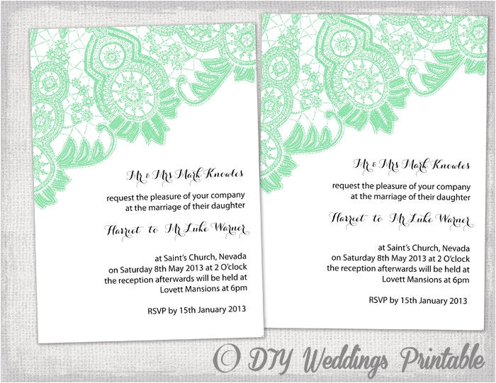 diy wedding invitation template editable mint green from Wedding Invitation Template Green