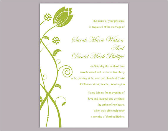 diy wedding invitation template editable word file instant from Wedding Invitation Template Green