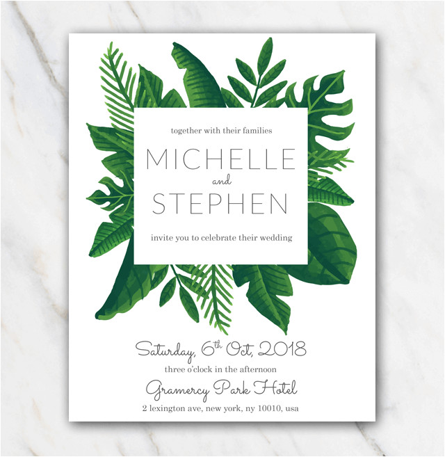fern wedding invitation template green leaf wedding invite from Wedding Invitation Template Green