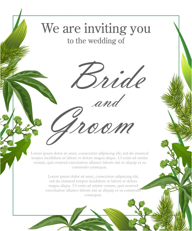 wedding invitation template with green leaves and fur from Wedding Invitation Template Green