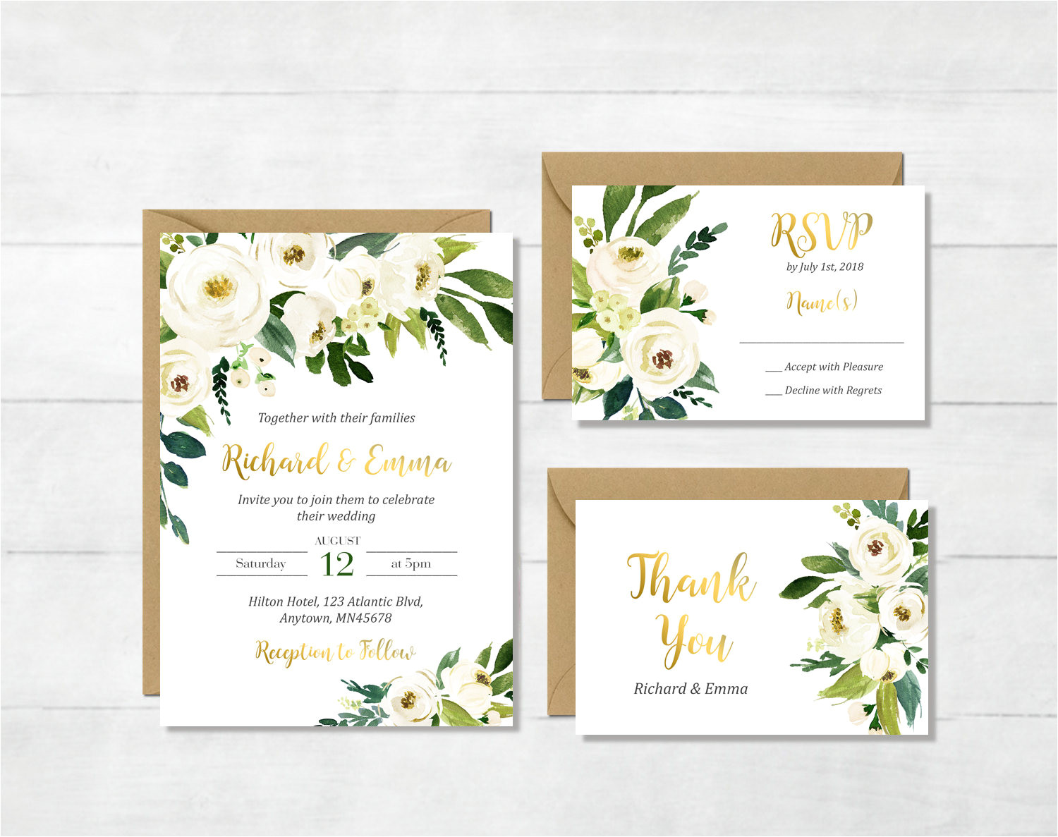 white gold green floral printable wedding invitation suite from Wedding Invitation Template Green