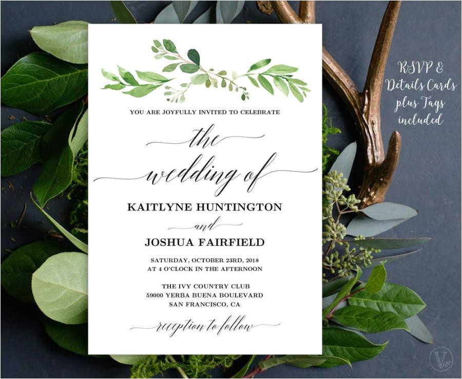 greenery wedding invitation template wedding invite from Wedding Invitation Template Greenery