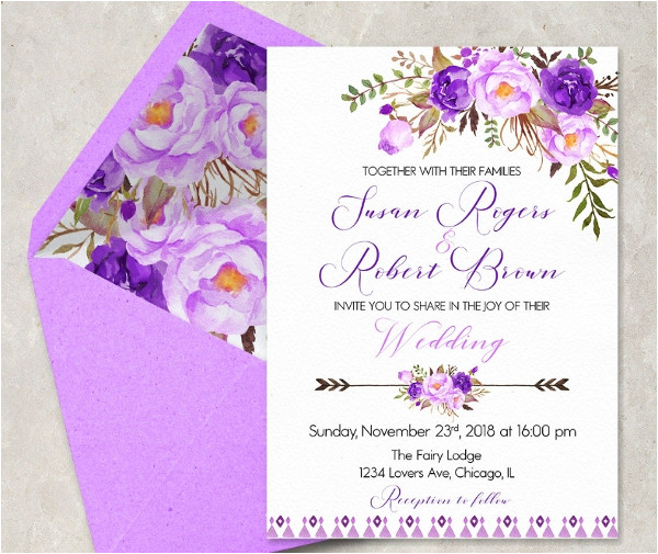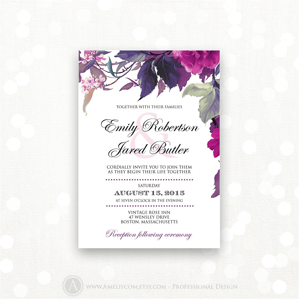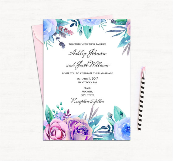 floral wedding invitation template purple invites blue from Wedding Invitation Template Lavender