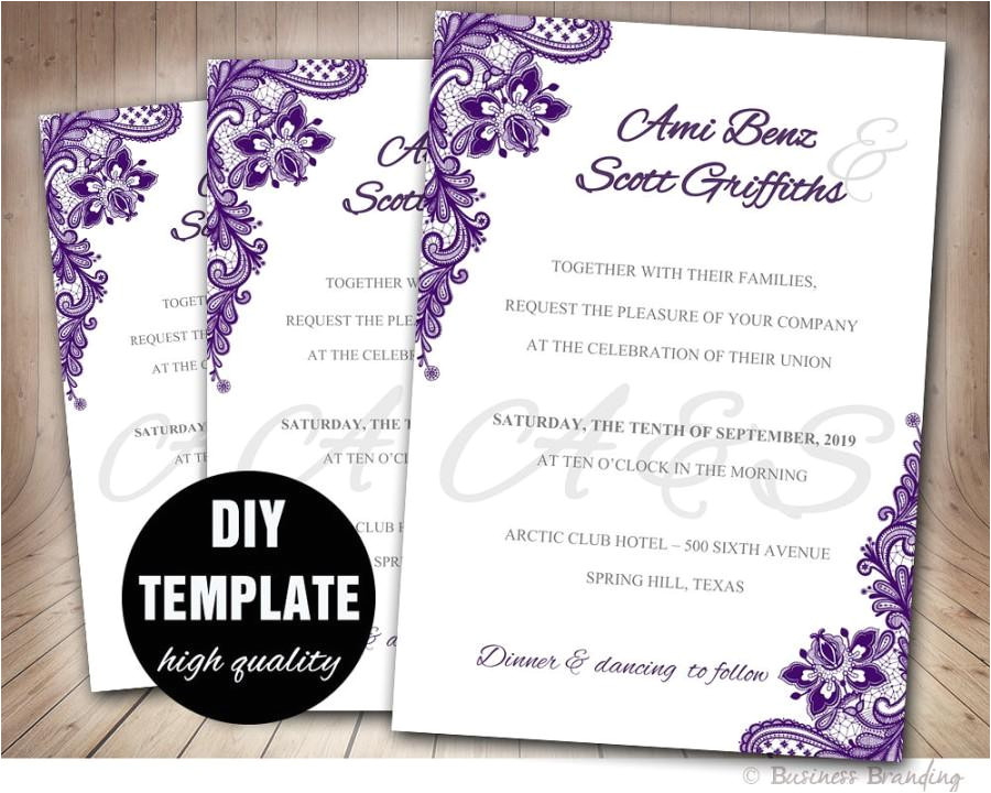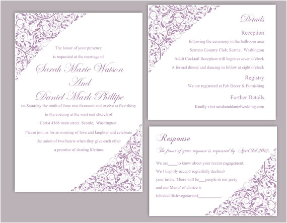 diy wedding invitation template set editable word file from Wedding Invitation Template Lavender