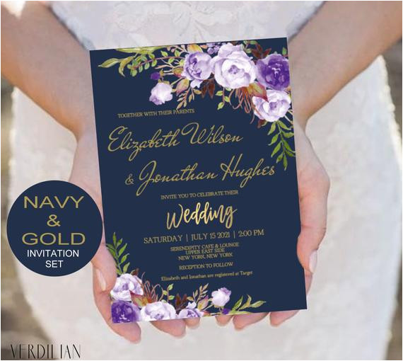 navy lavender gold wedding invitation template set purple from Wedding Invitation Template Lavender