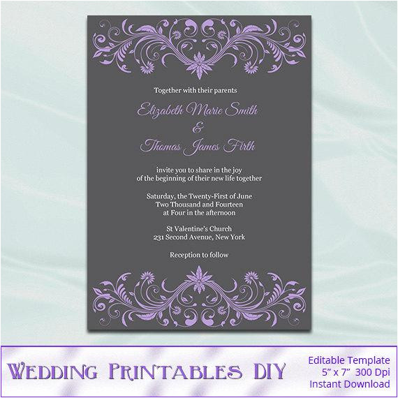 purple and gray wedding invitation by weddingprintablesdiy from Wedding Invitation Template Lavender