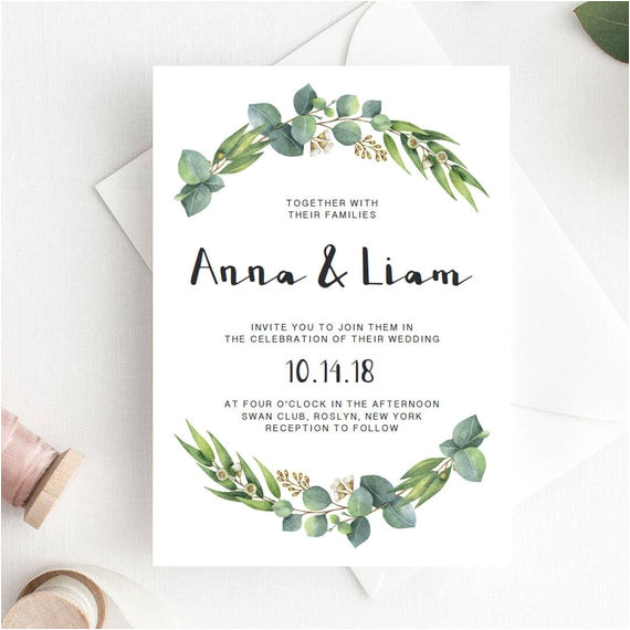 green leaves watercolor wedding invitation template wl1 from Wedding Invitation Template Leaf