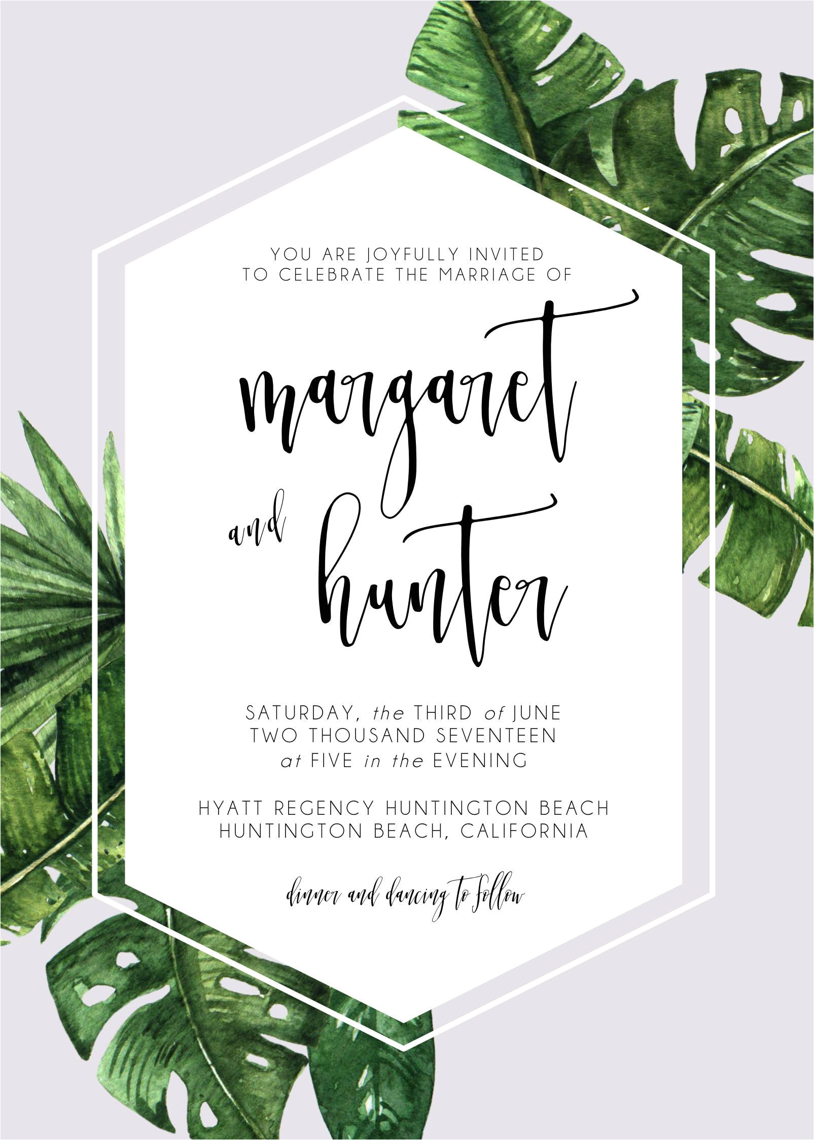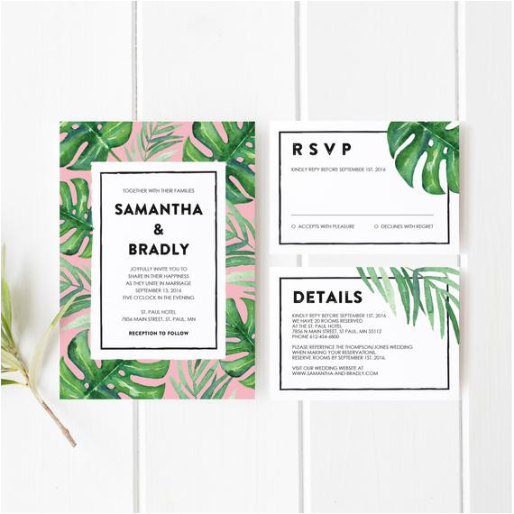 tropical modern wedding invitation set printable palm from Wedding Invitation Template Leaf