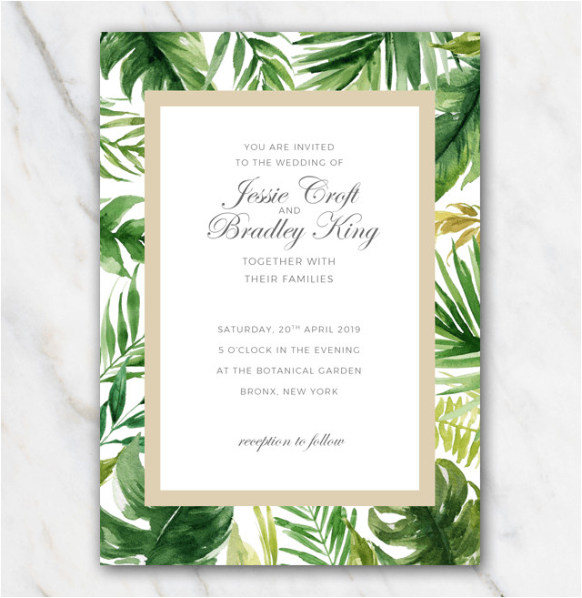 tropical palm tree leaves wedding invitation template in from Wedding Invitation Template Leaf