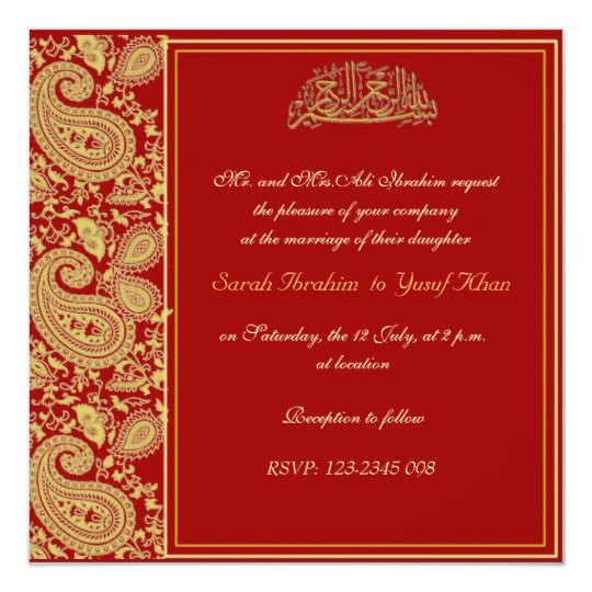 red and gold muslim wedding invitation zazzle com from Wedding Invitation Template Muslim