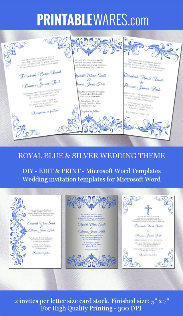 royal blue wedding invitation template editable microsoft from Wedding Invitation Template Royal Blue And Silver