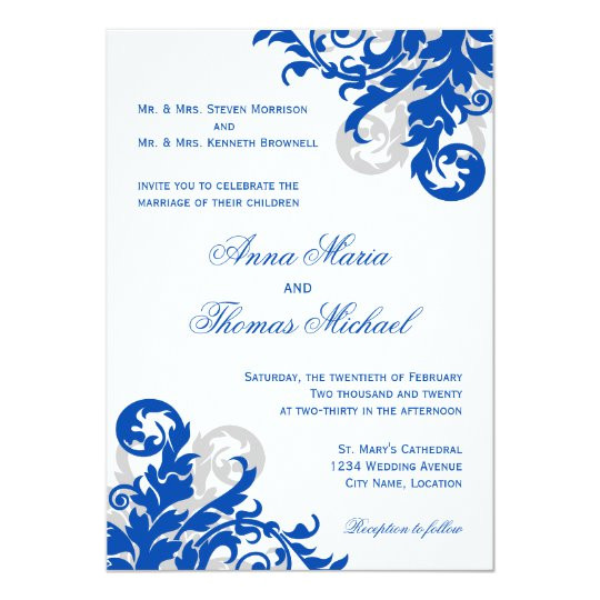 royal blue and silver flourish wedding invitation zazzle from Wedding Invitation Template Royal Blue And Silver