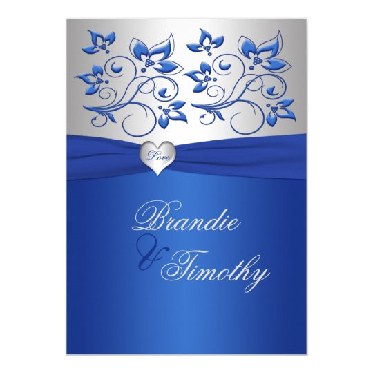 royal blue and silver heart wedding invitation zazzle com from Wedding Invitation Template Royal Blue And Silver