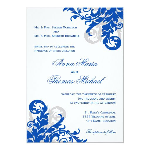 royal blue and silver flourish wedding invitation zazzle from Wedding Invitation Template Royal Blue