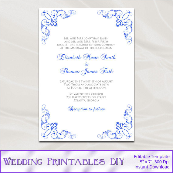 royal blue wedding invitation template diy printable blue from Wedding Invitation Template Royal Blue