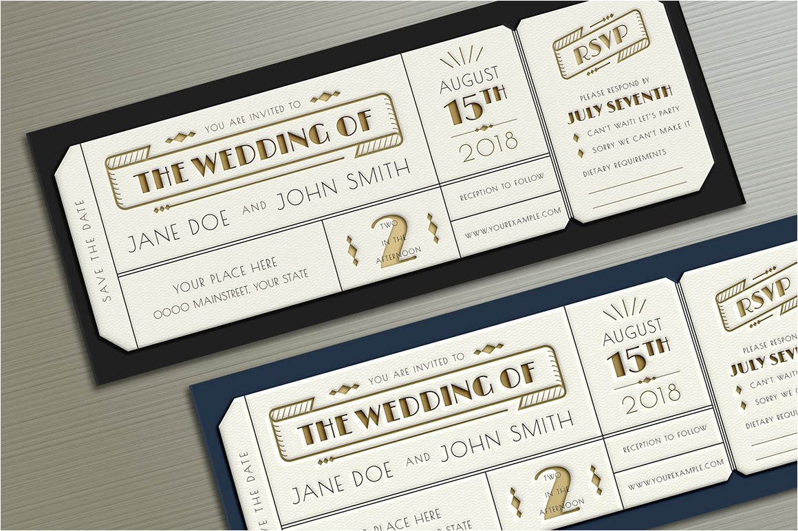 art deco wedding invitation ticket invitation templates from Wedding Invitation Template Ticket