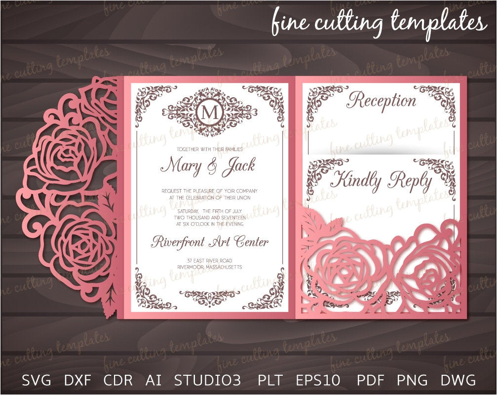 tri fold pocket envelope cutting template 5×7 wedding etsy from Wedding Invitation Templates Generator