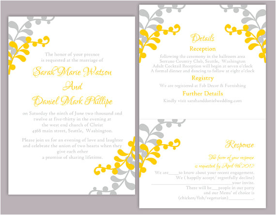 wedding invitation template yellow gray diy summer wedding from Wedding Invitation Templates Yellow