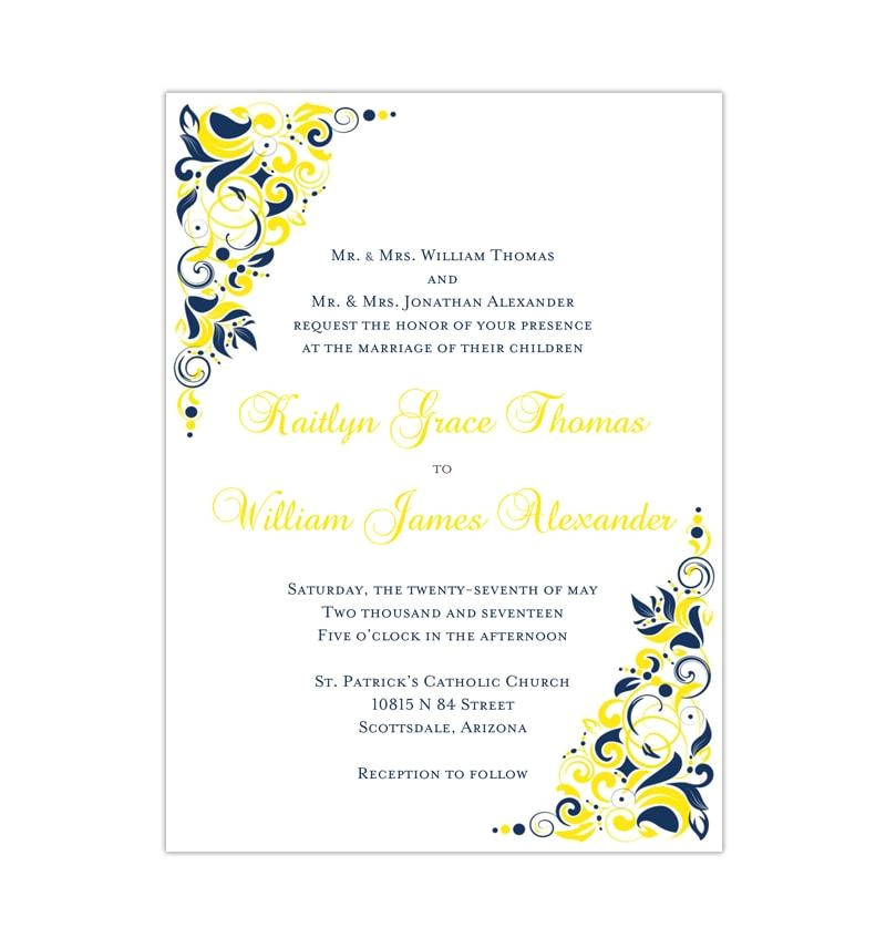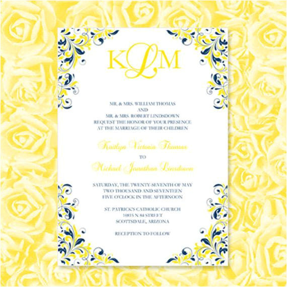 navy blue yellow wedding invitations kaitlyn from Wedding Invitation Templates Yellow