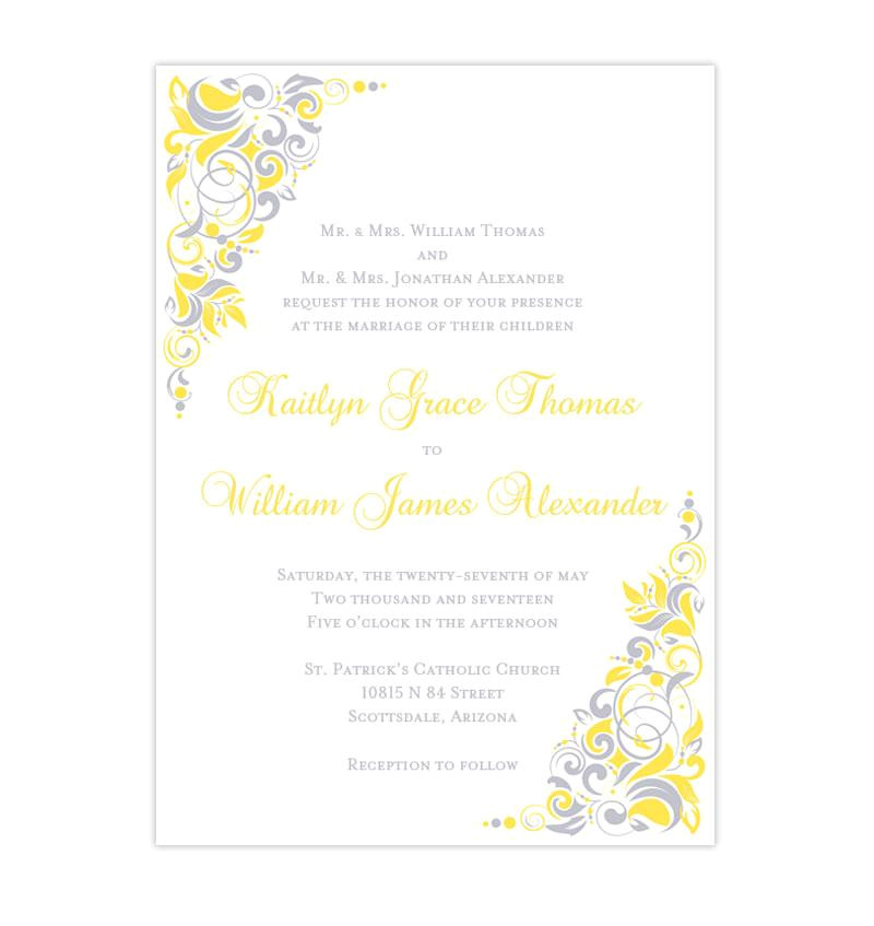 gianna wedding invitation yellow silver gray wedding from Wedding Invitation Templates Yellow