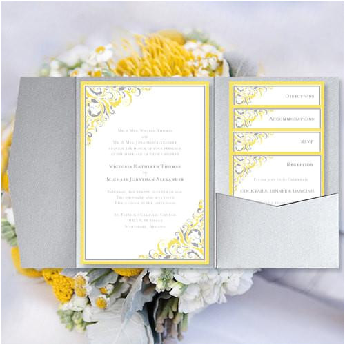 pocket fold wedding invitations brooklyn yellow silver from Wedding Invitation Templates Yellow