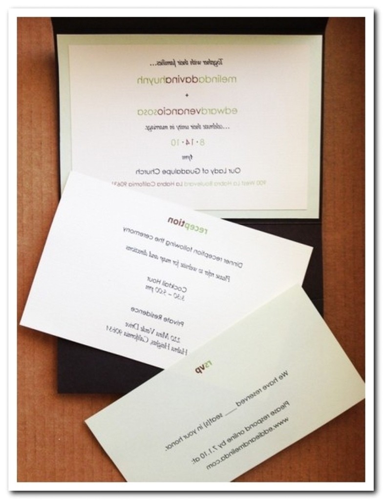 Barring a themed wedding, chances are there is something unique approximately it, perhaps your wedding color. You can bring the colors of your wedding party into your invitations, although you reach not want to just send out white and teal green invitations. choose an engaging expected or textured paper in teal green and off set it past a sheer cover in cream. The best event to get bearing in mind using wedding colors for your invitations is to step out of the bin and use your imagination.