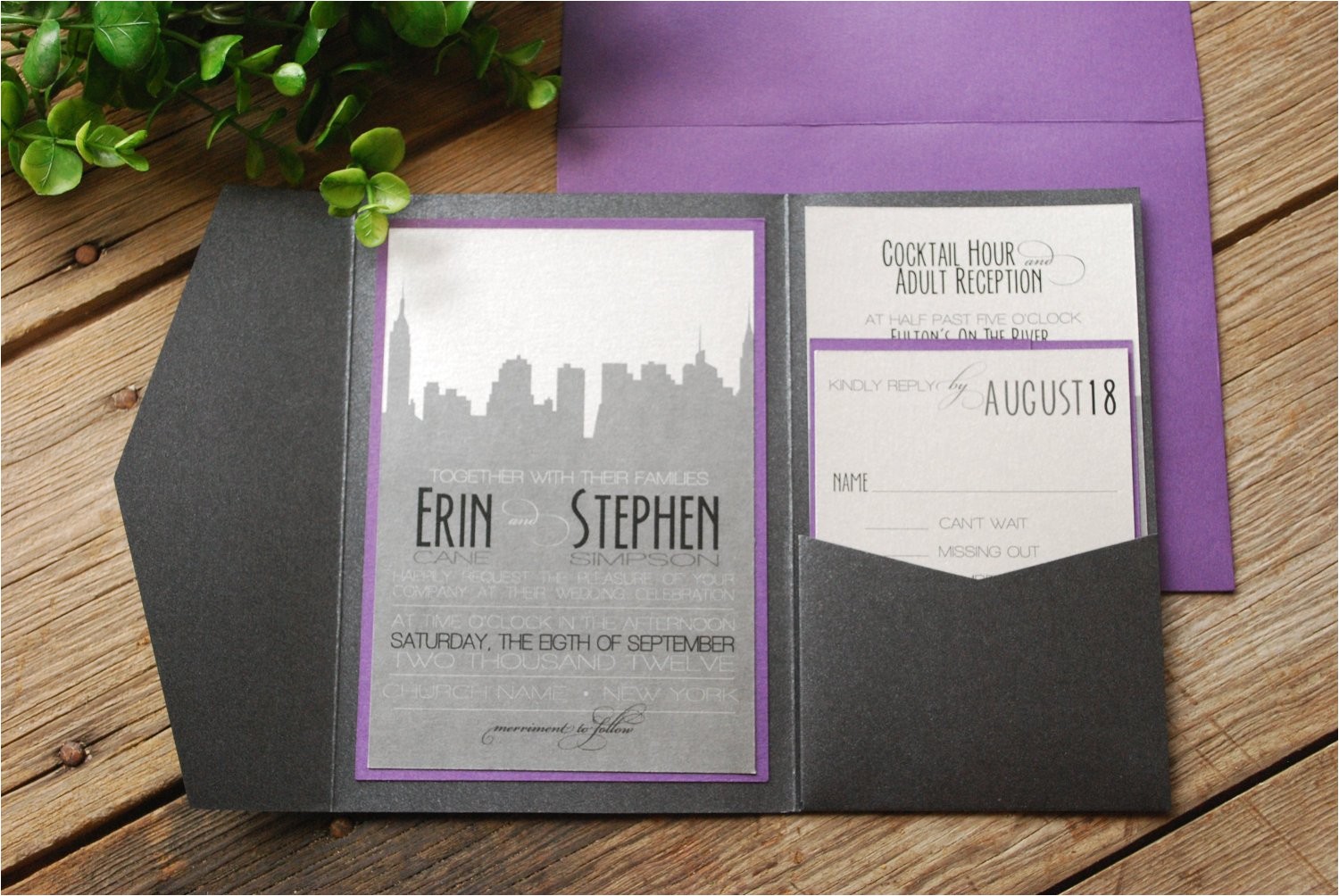 wedding invitation new york skyline purple and black with from wedding invitations in nyc
