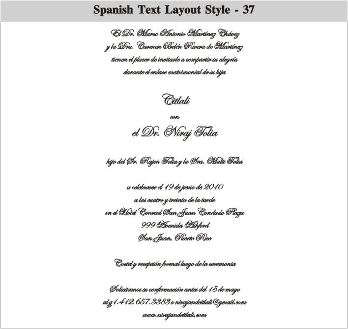 wedding invitations in spanish text sample: