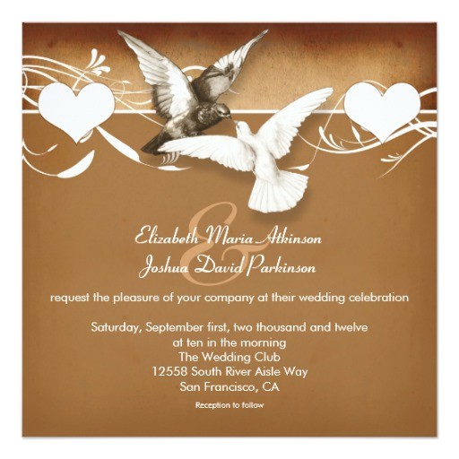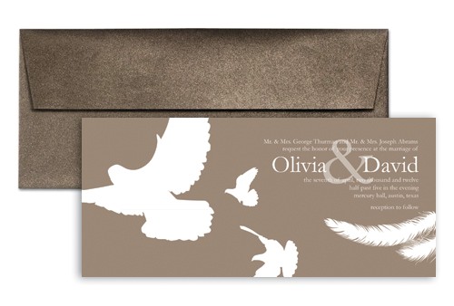 brown white doves wedding invitation example 9×4 in from wedding invitations with doves