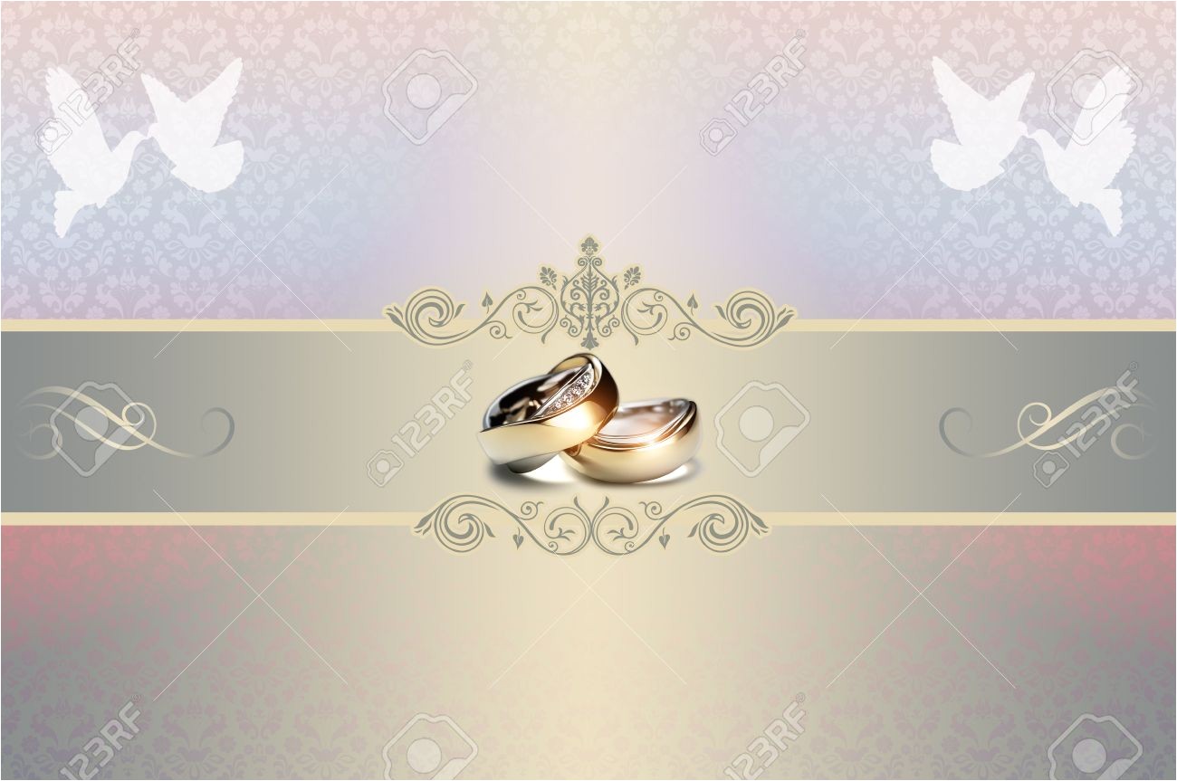 template of wedding invitation card with gold rings and from wedding invitations with doves