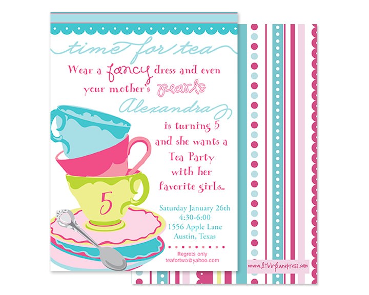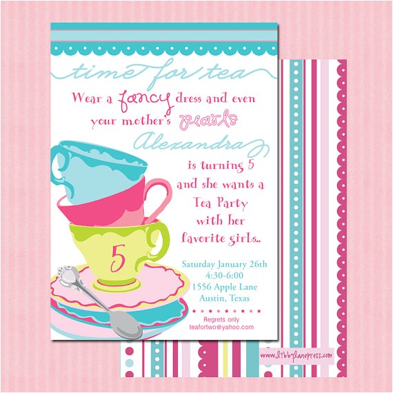 tea party whimsical birthday invitation pink and turquoise from whimsical tea party invitations