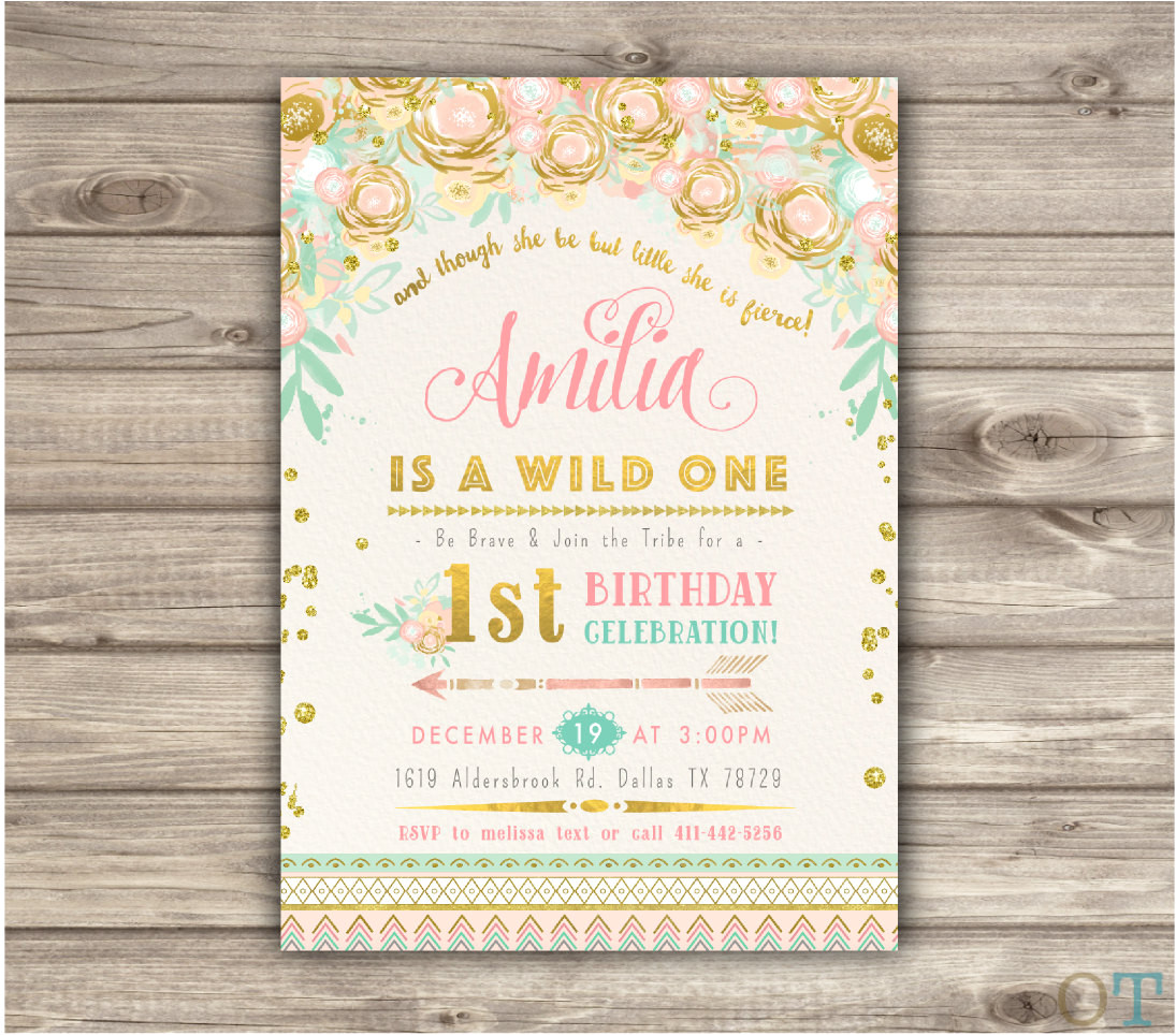 wild one 1st birthday party invitation kinsie michelle from Wild One Birthday Invitation Template Free