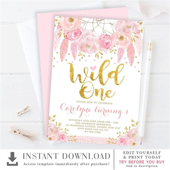 wild one birthday invitations pink and gold party girl first from Wild One Birthday Invitation Template Free