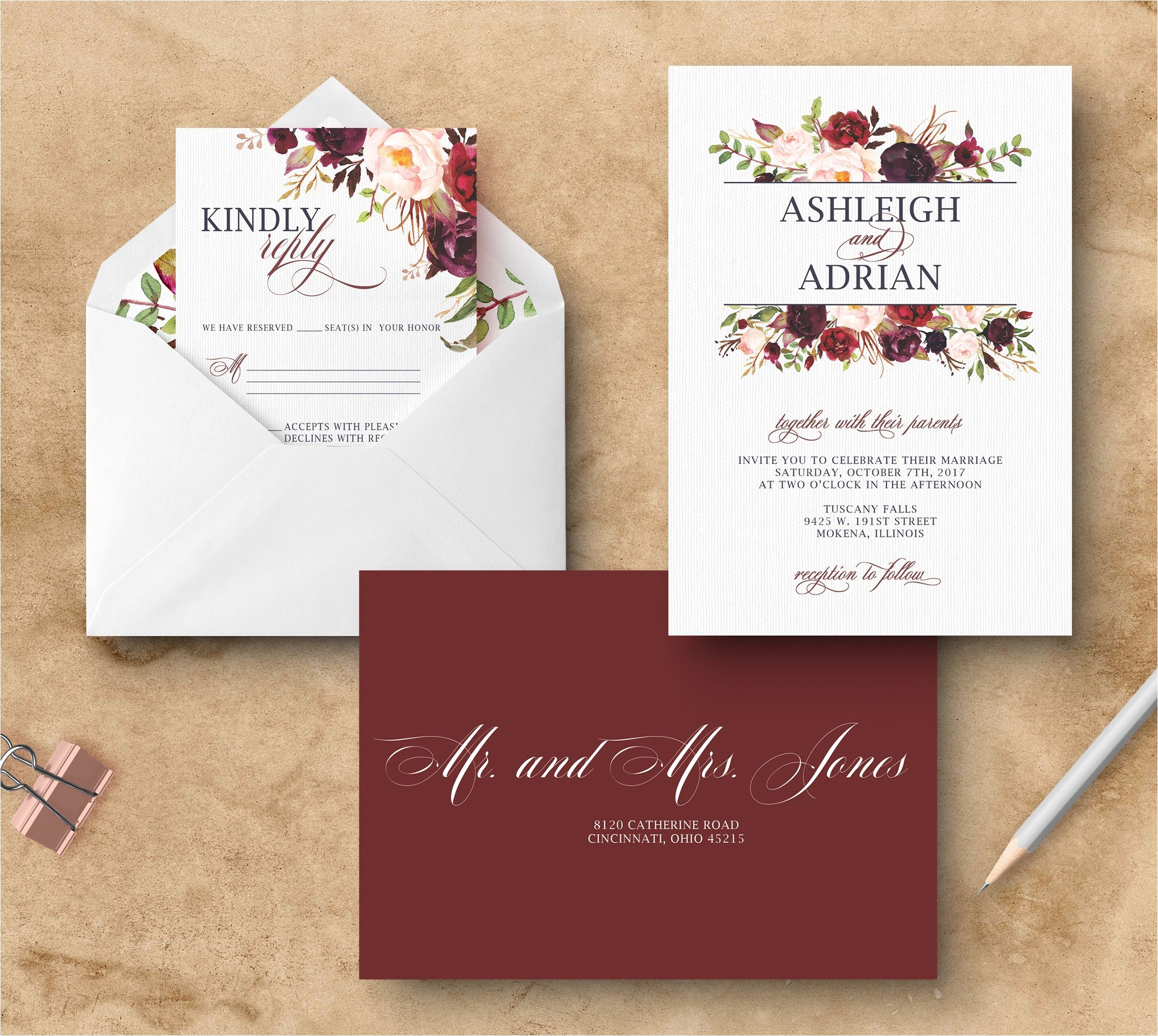 marsala wedding invitation floral burgundy wedding from wine colored wedding invitations