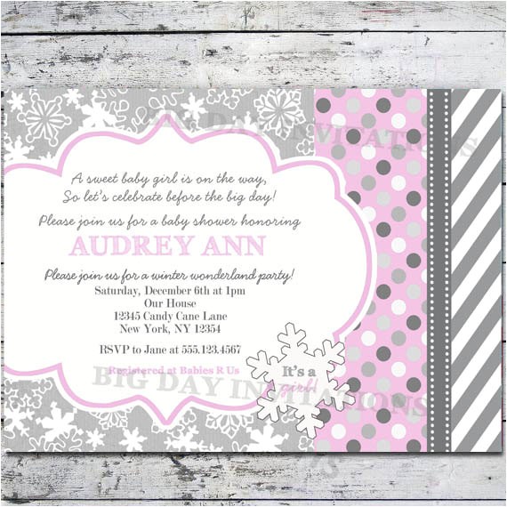 winter baby girl shower invitations sample: