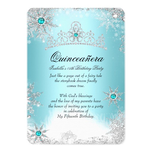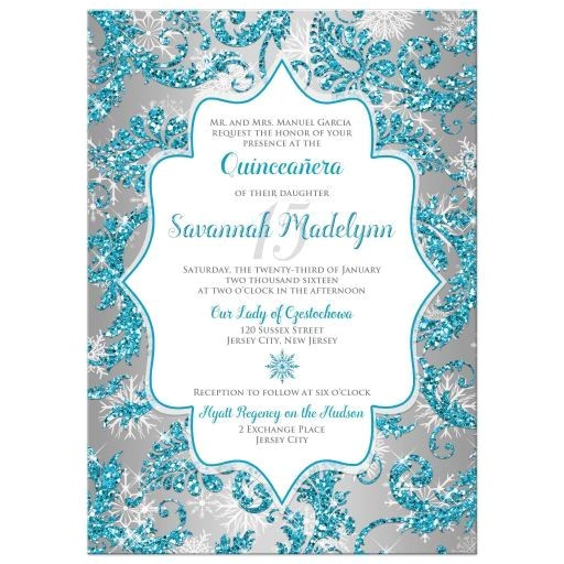 fancy teal snowflake winter wonderland quinceanera 5 25 from winter wonderland quinceanera invitations