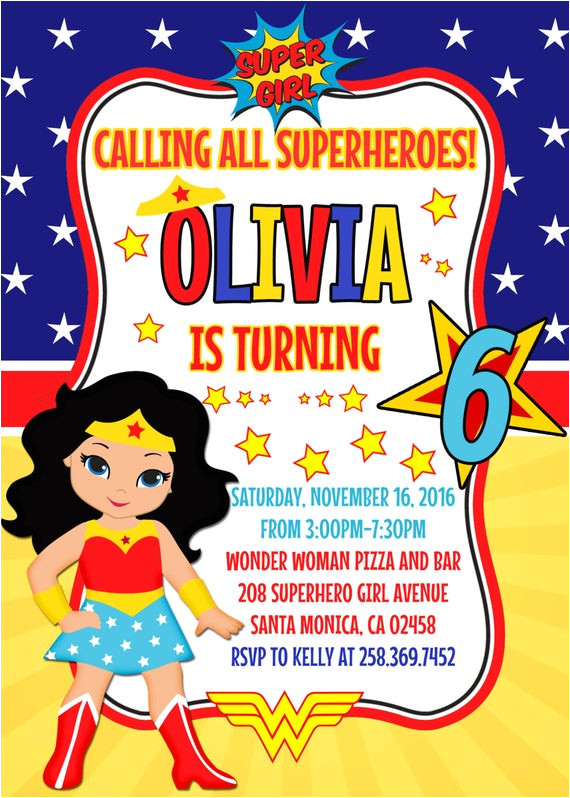 wonder woman party invitation wonder woman invitation wonder from Wonder Woman Birthday Invitation Template