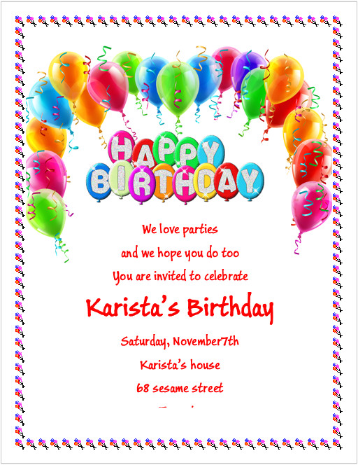 6 birthday party invitation template word teknoswitch from Word Birthday Party Invitation Template
